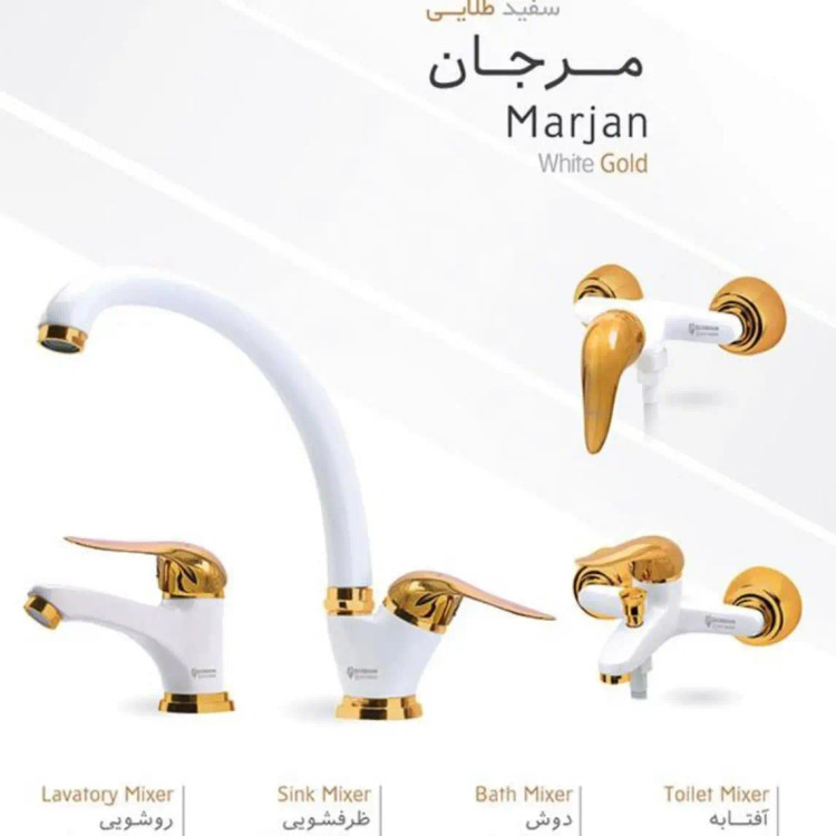 شیرآلات طلاییه مدل مرجان شیر ظرفشویی شیر حمام شیر روشویی شیر توالت در رنگهای: کروم، سفید، طلایی، سفید طلا، سفید کروم و مشکی کارتریج ۴۰ دارای ۵ سال گارانتی
