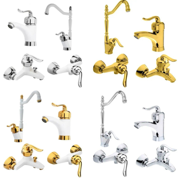 شیرآلات طلاییه مدل قاجاری دارای پک کامل شیر ظرفشویی، شیر حمام، شیر روشویی و شیر توالت در رنگبندی : کروم ، طلایی، کروم سفید و کروم طلا کارتریج ۴۰ دارای ۵ سال گارانتی